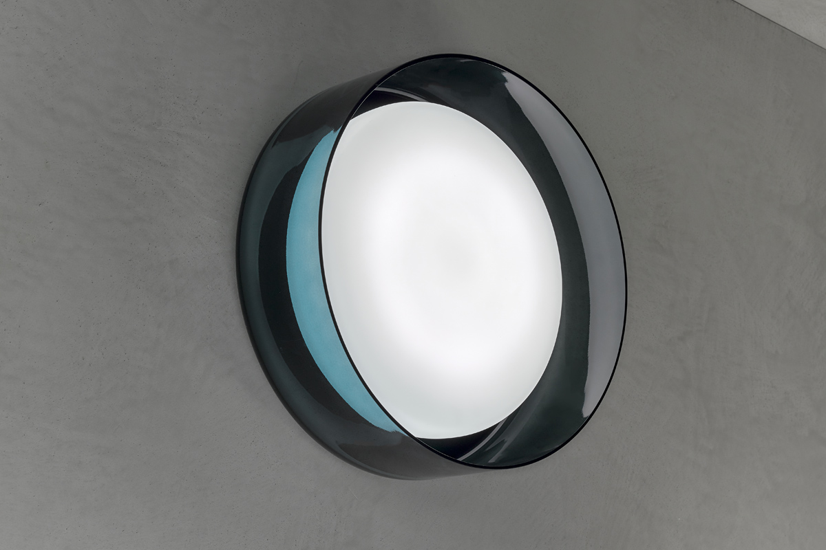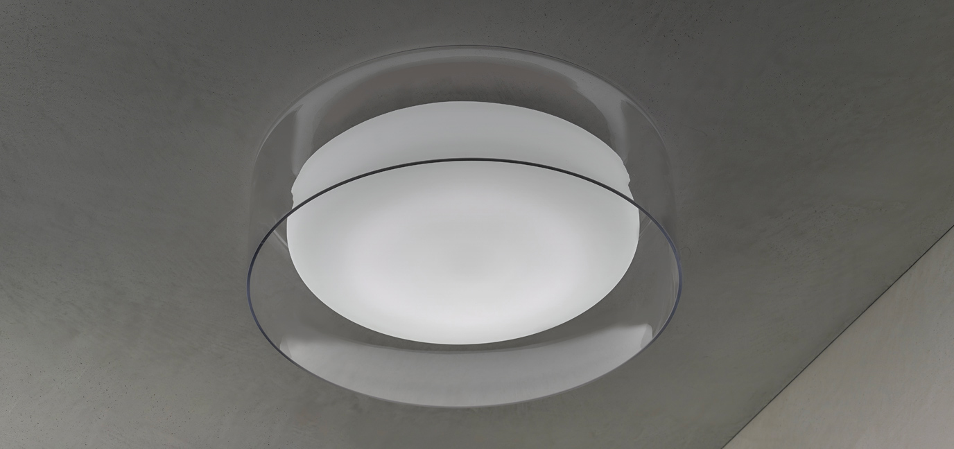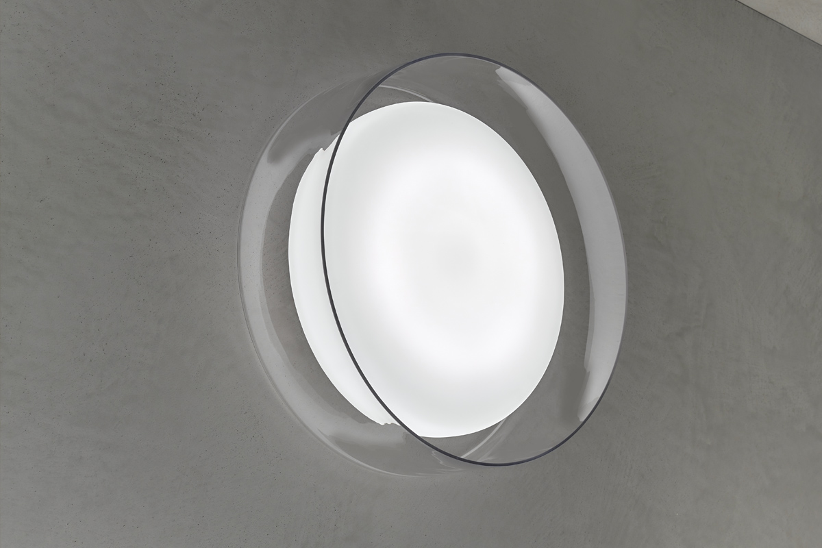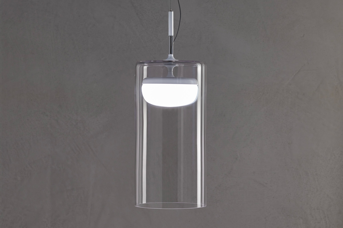 In Diver we imagined that the bell was the external crystal diffuser that guards and protects the precious light source in opal blown glass.